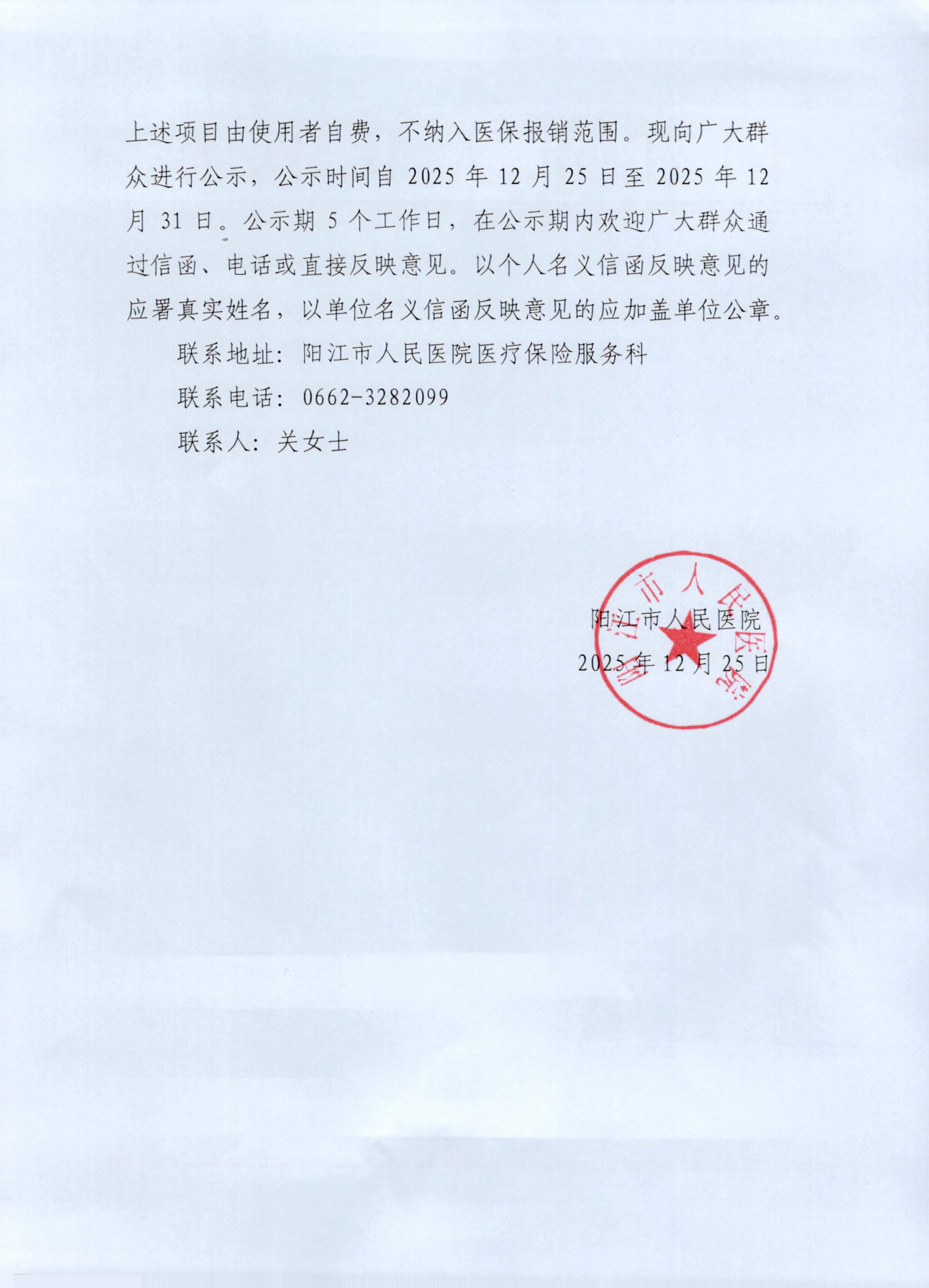 关于实行新增试行医疗服务价格项目收费的公示20251225